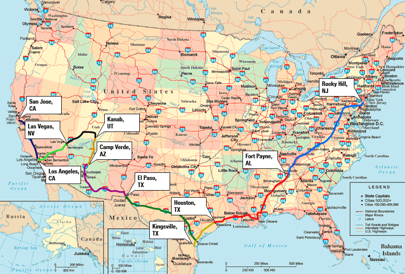 Day 1: Rocky Hill, NJ to Fort Payne, AL States: New Jersey, Pennsylvania, Maryland, West Virginia, Virginia, Tennessee, Georgia, Alabama |